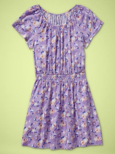 Gap Short flutter sleeves. Round neckline. Smocked waist. Shirring throughout. Allover floral print.